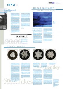 Alongside this, we have beautiful imagery and essays from Coral Guest and Polly Sutherland, intiguing and thought provoking scientifically oriented papers by Dr. Hugh Morris and Scott Beadle FRAS and an extraordinary article on snowflakes by mathematician Dr. Snezana Lawrence. It's bold, boundless and beautiful.