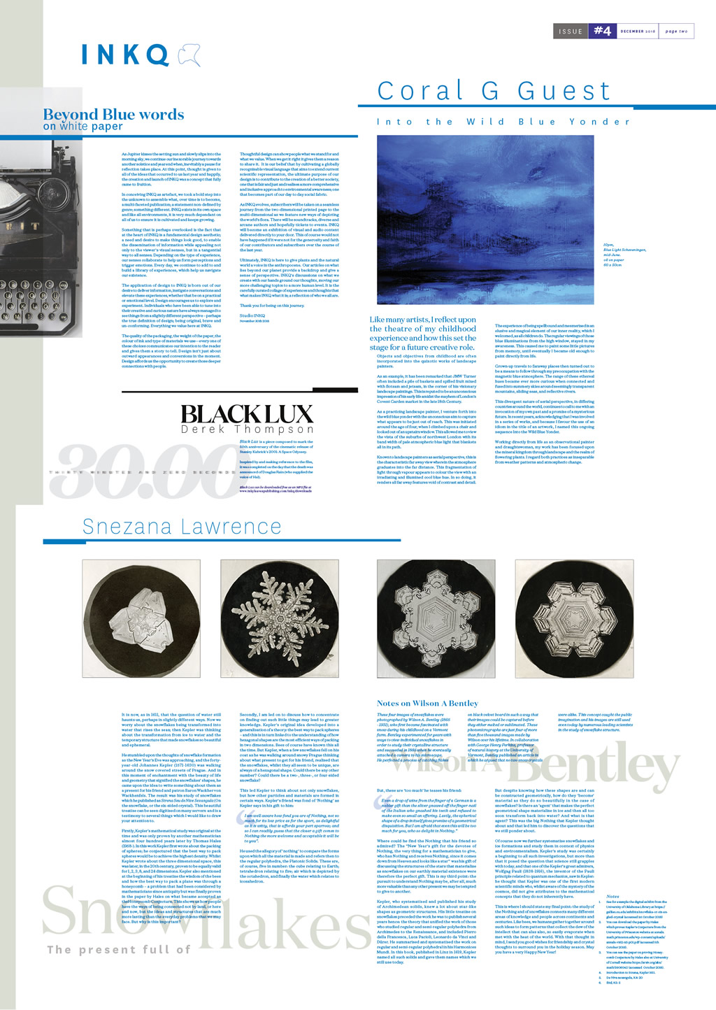 Issue Four of INKQ is the culmination of 12 months intense effort and evolution for this publication. Each issue has continued to mature the brand and the evolving scope of the content has widened to encompass different artistic approaches and methods. Issue 4 advances this objective with an ever more eclectic mix of contributors.