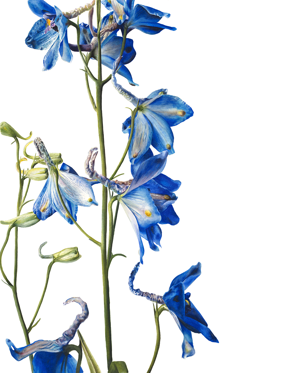 Consolida sp. Covent Garden Flower Market, London, UK An original artwork by Úrsula Romero (2020) Watercolour on paper