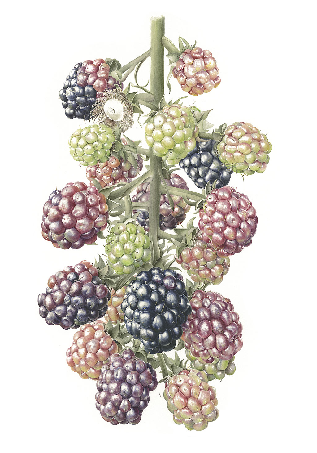 A limited edition fine art botanical print of a Blackberry (Ribes uva-crispa) raceme printed on acid free archival 330gsm paper using archival inks.